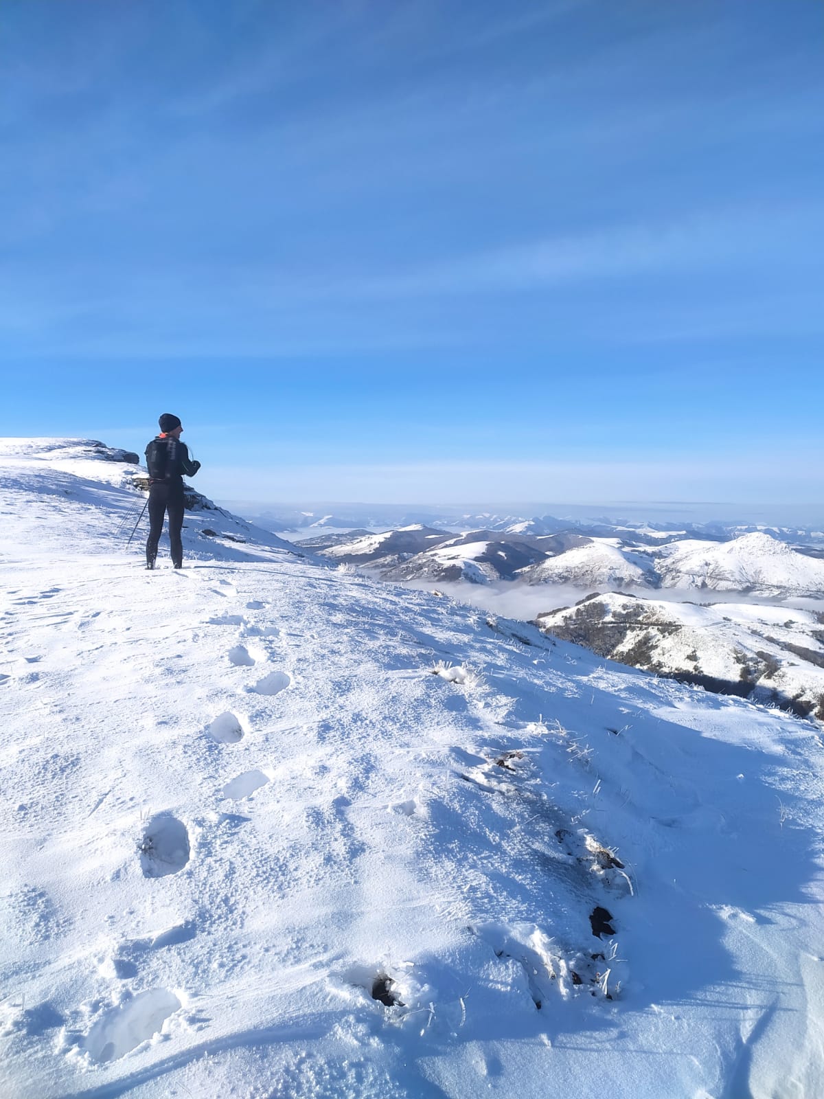 Sortie sous la neige du côté de Bidarray pour Laure et moi sur un parcours de 31km - Irubela, Gorramendi, Gorramakil et Iparla au programme. C'était absolument incroyable et malgré la lenteur parce que dur dur parfois d'avancer sur une trace invisible et avec de la neige parfois jusqu'aux genoux nous en avons pris plein les mirettes. Ce fut grandiose ! - Cécile -
